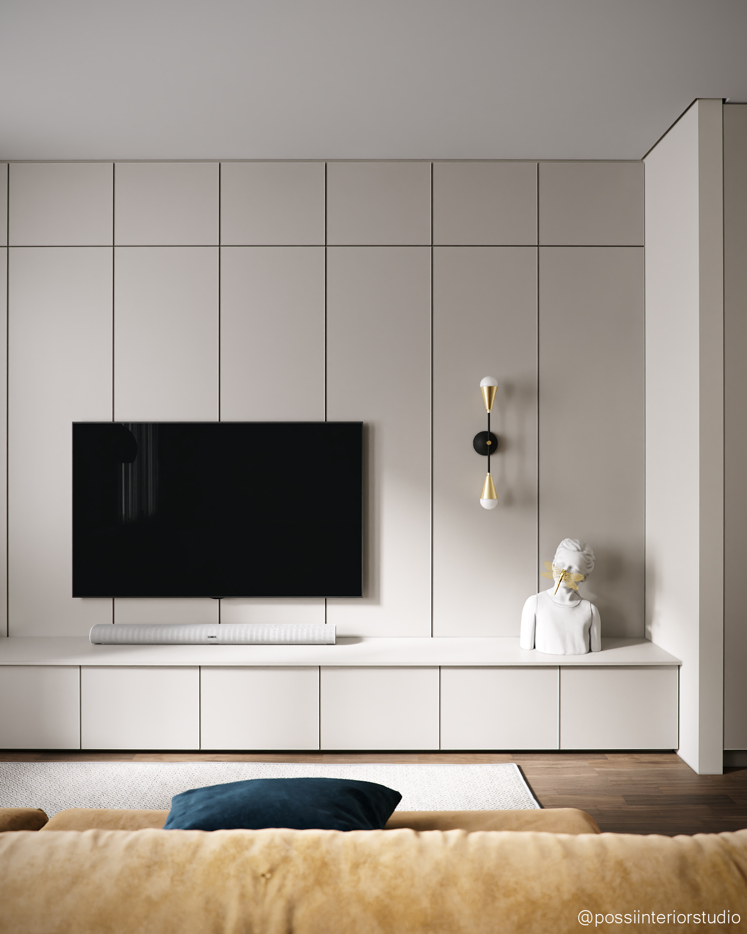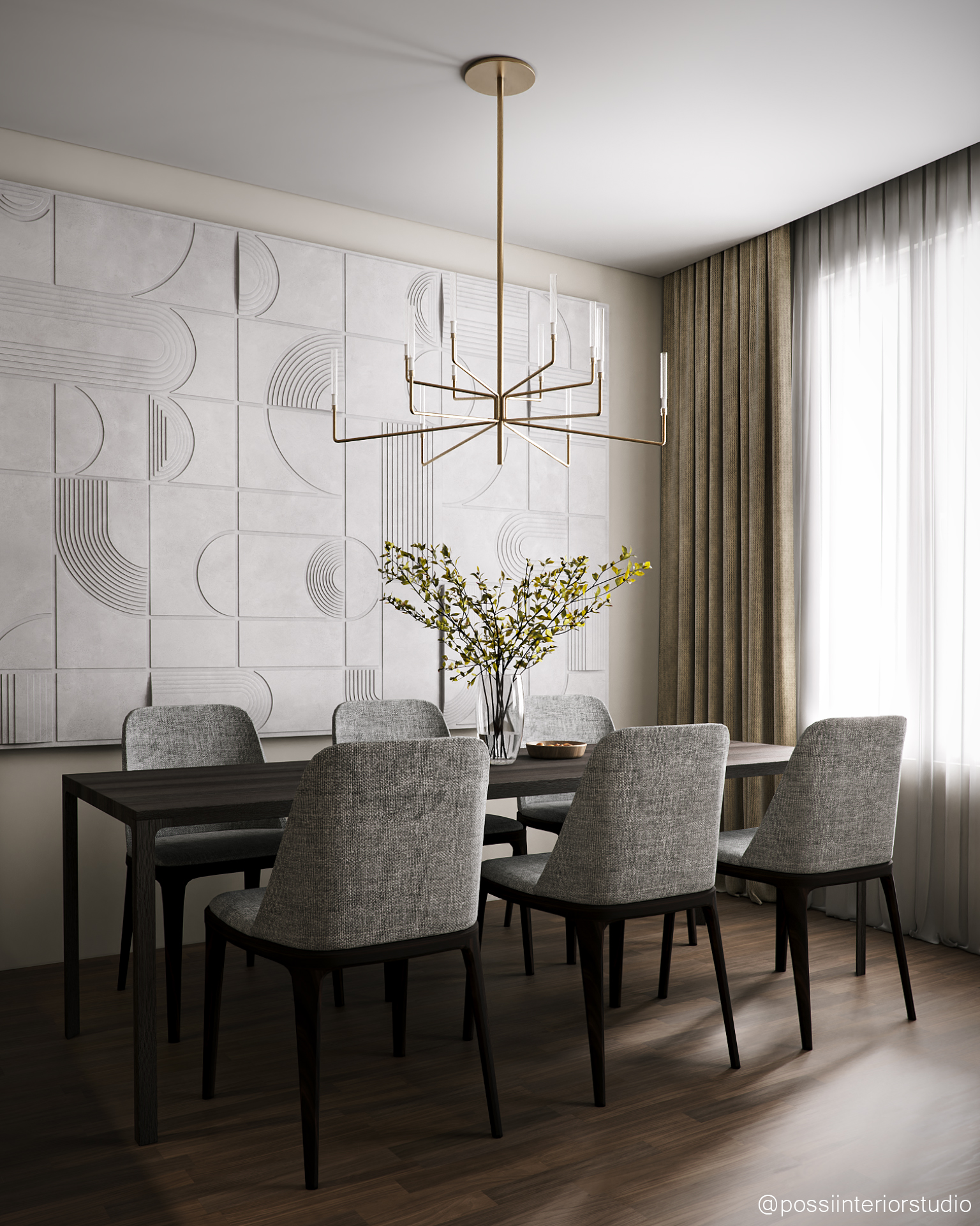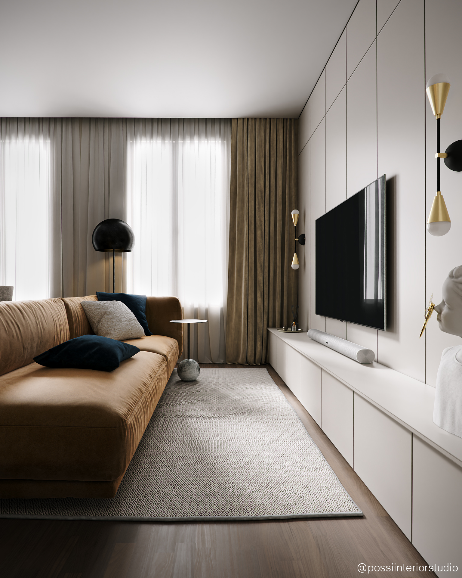 Diese Wohnung vereint Funktionalität und Eleganz in einem ausgewogenen, hellen Raum, in dem Wohn-, Essbereich und Küche fließend ineinander übergehen. Eine neutrale Farbpalette schafft Ruhe, während senfgelbe und goldene Akzente stilvolle Kontraste setzen. Das Design meidet Extreme und findet eine harmonische Balance zwischen Schlichtheit und dezentem Glamour – mit Komfort, Persönlichkeit und Raffinesse bis ins Detail.