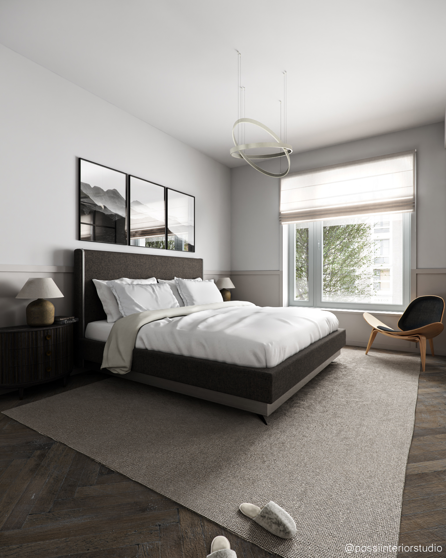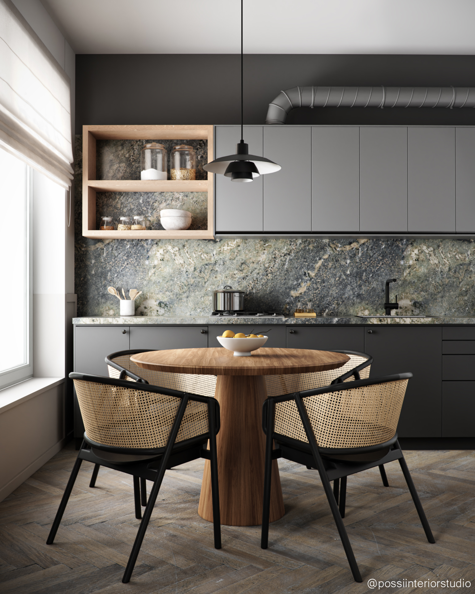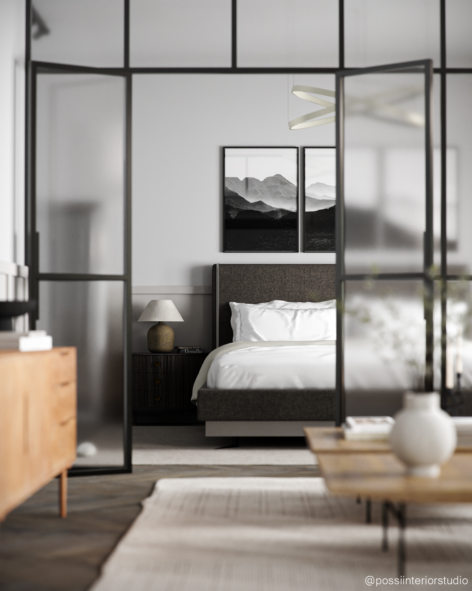 Diese kompakte Wohnung nutzt jeden Quadratmeter intelligent aus. Ohne größere Trennwände gehen die Bereiche – Küche, Wohnzimmer und Schlafzimmer – nahtlos ineinander über und schaffen eine helle und gemütliche Umgebung voller natürlichem Licht und Komfort.
